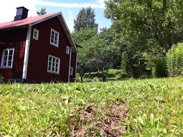 Det är först när man kommer nära, eller när man ser spåren i gräsmattan, som man fattar hur stora älgarna är. Och vilka kliv de tar! Graciösa djur skulle jag vilja säga, och skönt att jag inte var tvungen att gå ner på utedasset under natten. Man vill ju inte skrämma en älg.