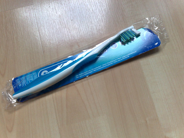 Jag får inga bokmärken längre när jag är hos tandläkaren. Men jag får alltid en tandborste. Den här gången var det en Oral-B CrossAction. Den här gången var det en med en massa strån som pekar åt olika håll, och på framsidan stod det ” for professional use”. På fem språk.