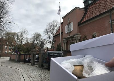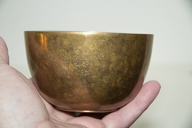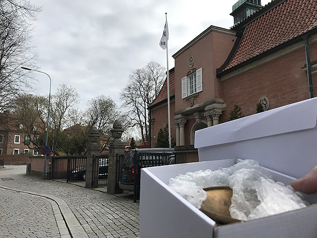 Den 18 april i år var en lördag. Det hade, för dramaturgins skull, känts bra om jag hade åkt med min pappas tändare och hans plakett till den koreanska ambassaden just denna dag, men helger bryr sig inte om dramaturgi, så det blev måndagen den 20 istället, och det blev ingen plakett, utan en risskål som följde med i den vita lådan jag lämnade in i receptionen ute på Djurgården, tillsammans med ett förklarande brev.