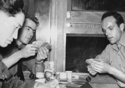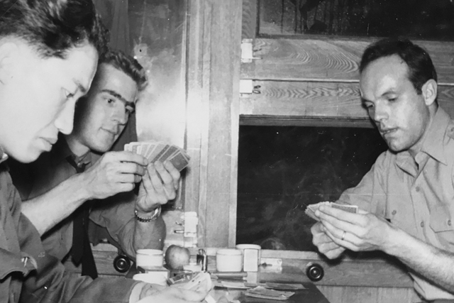 På tåget upp till gränsen mellan Nordkorea och Kina, fanns inte många bekvämligheter. Men man kunde spela kort, med varandra och med den eskorterande militären.