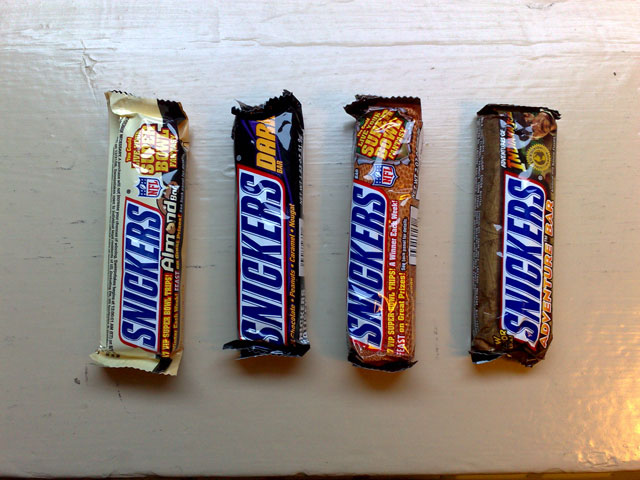 Finns det fler än tre av något, så dyker tanken upp: det här kan man testa. Den till vänster ser godast ut, men det var den näst längst ut som vann. The super bowl NFL bar.