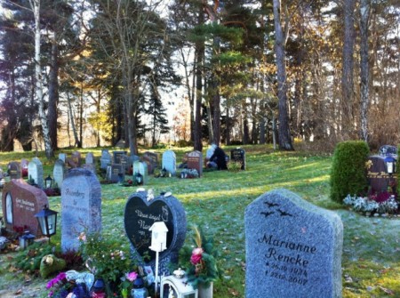 Där, 12 meter lite längre bort ligger svärfar Göte och svärmor Ingrid och jag saknar dem också, liksom min dotter Josefine som ligger nergrävd under det stora vackra trädet som skymtar i bakgrunden.