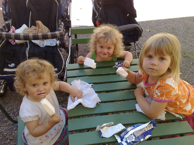 Dagens vaniljpuck ser större ut än vad jag minns den. Annars brukar allt bara bli mindre. Men känslan ser ut att vara densamma, och oron över att den ska börja rinna innan man hinner få i sig hela. Tänk att glassmagen nästan alltid är tom!