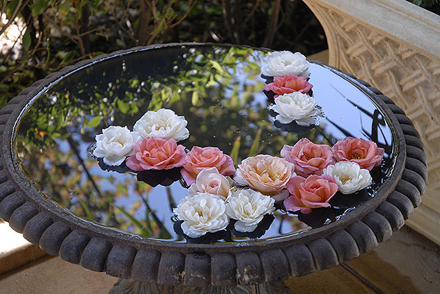 Jag promenerar längs ”bär- och rosengången” och beundrar de härliga rosorna. De underligt gulröda Juliet, den snövita madame Druschki eller “Snow Queen”, mjukt orangefärgade “Prince de Bulgarie”, den svagt magentafärgade nya “Norwood” och alla de andra. ”Princess Marys” stora enkla blommor lysa som blod. “Rayon d’or” stå som intensivt gula färgfläckar mot den mörka grönskan, “Madam Ravary” är förtjusande, vackert gulröda, nästan lite tegelfärgade. Rosorna stå nere vid jordgubbslanden, och är det någon alltför stor, fullmogen jordgubbe, som råkar komma inom synhåll, så är den strax putsweg!