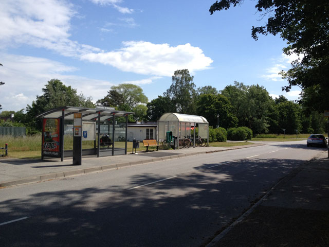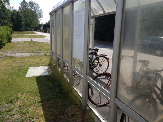 Intill busskuren med sin släta träbänk, fimp och utspottade kola, finns ännu en kur, med cyklar.