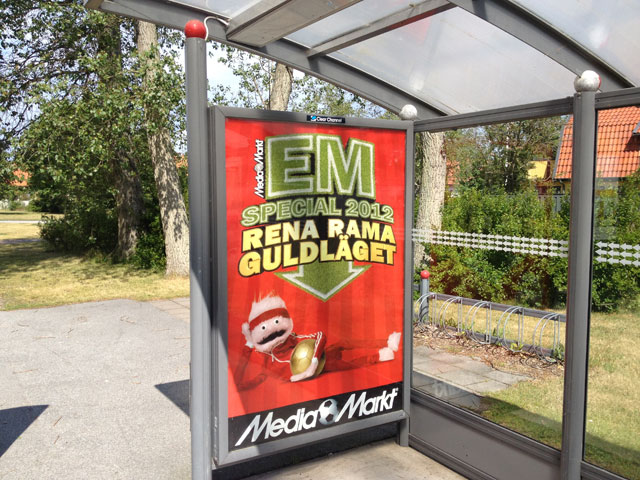 Annonsen på busskurens kortsida skriker ut sitt dubbla EM-budskap om guldläge, långt efter att allt hopp försvunnit för det Svenska fotbollslandslaget och känslan som förmedlas är snarare tomma ord som lovar intet och lockar till något som inte finns. Jag får en insikt att det aldrig funnits ett guldläge överhuvudtaget.