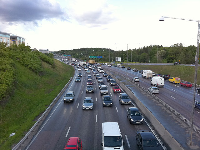 Alltid lika packat på infarterna. Som här vid Frösunda. Det är väl bara några få timmar runt lunch som det är raka spåret på E4 numera. Och minsta lilla incident, så tjocknar det till snabbt och löses upp i snigelfart. Är inte Stockholms trafiksystem väldigt utsatt och lättstört? Stänger man tunneln på Essingeleden vid Gröndal så stänger man hela norra Sverige, om man inte vill åka över Mariefred och Västerås.