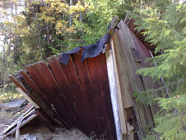 Sista höstdagen på landet kräver lite engagemang och en timmes kontrollpromenad. Står det fallna huset kvar i älggläntan?