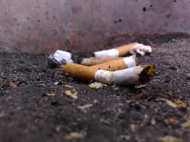 Jag tycker det känns som om det är färre fimpar på marken numera. Förr kunde de finnas överallt, nu koncentreras de till området strax utanför. Och där, strax utanför, finns det alltid gigantiska asktunnor med gott om fimpaplats. Se där en utveckling i rätt riktning.