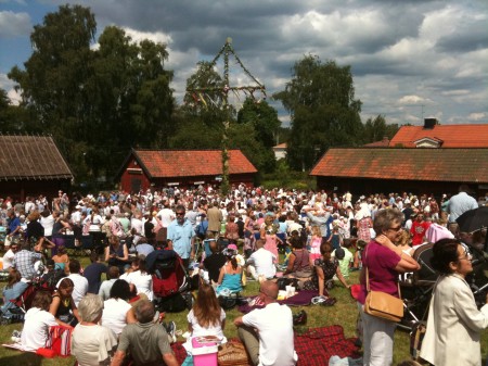 Fullt med folk, midsommarstång, fika i gräset, fiskdamm och danslekar. Lägg sen till jordgubbar och grillat och frågesport och och tårta och godis och glass så kan man ju konstatera att alla ingredienser fanns med i år också. Till och med solen värmde lite extra idag.