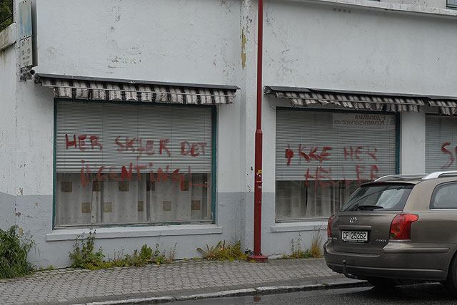 Den lokala befolkningen är nog inte alltid helt tillfreds med att bo så isolerat som Honningsvåg. I alla fall så är det någon som vill meddela världen att det finns en del övrigt att önska, både för Honningsvåg i allmänhet och det här huset i synnerhet.