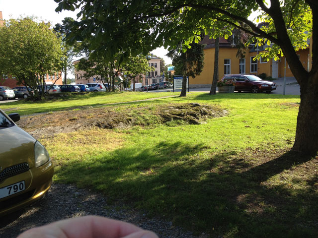 Men ibland känns det osäkert, som här på Karolinska. Är det rätt sten? Varför stämmer husen inte riktigt i bakgrunden? Vad har man rivit sedan 1949 och vad har kommit till. Av alla stenar som finns på karolinska, är det här den bästa, men jag skulle inte tro att det är den rätta. Den får låtsas vara rätt ett tag.