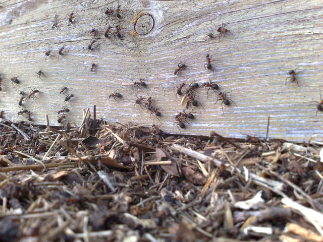 Att flytta en myrstack verkar vara helt omöjligt. Våra myror på landet bor till hälften inomhus i vedboden, och flera gånger om året försöker jag gräva bort och sopa ut den. Det slår aldrig fel, någon vecka senare är den tillbaka, visserligen i lite annorlunda skepnad, men i full form. Varför byggs den upp inne? Varför utvecklar myrorna inte utedelen istället, som får vara ifred och har mycket större potential.