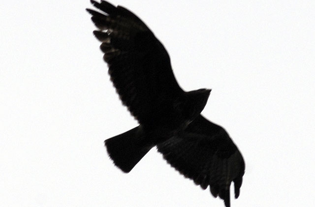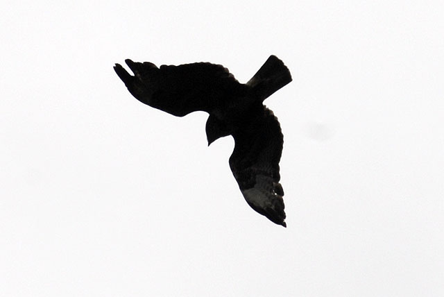 Jag är verkligen inte bra på fåglar, men så mycket förstår jag att det är ingen talgoxe som fladdrar däruppe. Skulle tippa på ormvråk eftersom det finns sådana häromkring. Ja, ormvråk får det bli tills någon mer kunnig rättar mig.