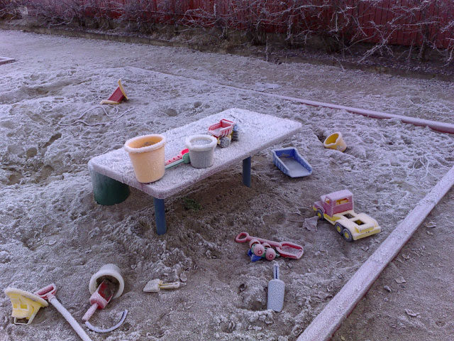 Det känns som det bara var igår när barnen lekte sandslott. Vintern som aldrig kom, lyckades överraska oss ändå. Nu är spaden fast i marken till våren, när det tinar upp. Allt förberett för sommaren. Egentligen rätt praktiskt.