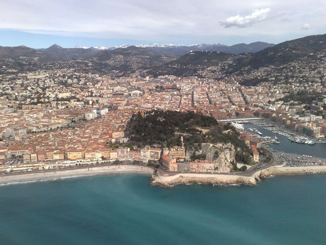 Sol, blåsigt, men vårvarmt. Som ett smycke breder Nice ut sig. Gamla stan med hamnen.