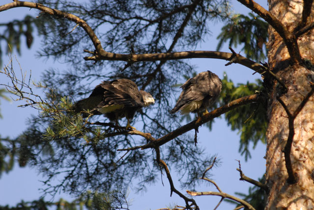 Ormvråksungarna har lämnat boet och roar sig på egen hand. Men när de ser föräldrarna komma hoppar de snabbt tillbaka, blir små hungriga yllen igen och låter sig bli uppassade. Det känns bekant på något vis.