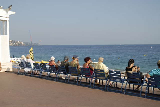 Det är något hemligt lockande med en strand vid Medelhavet. Något som får vuxna människor att rada upp sig på första parkett, i väntan på skådespelet. Vad väntar de på, vad är det för pjäs de kommer att se, finns det någon handling eller njuter de bara av scenografin? Där kommer en våg, där kommer en till. Var nionde våg är alltid lite större än de övriga, och de stora vågorna kommer alltid tre och tre med den största i mitten. Visste ni inte det? Då får jag föreslå en gratisbiljett till första parkett. Det är föreställning imorgon också.