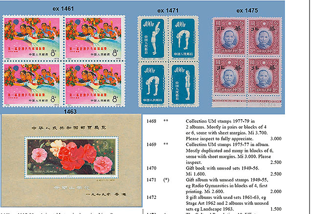 Nu är det dags att se vad de gamla kinesiska ostämplade frimärkena verkligen är värda. På lördag auktioneras de ut på frimärkshuset, en komplett uppsättning av frimärken från när Kina blev kommunistiskt efter andra världskriget, till 1955. Allt väldigt snyggt paketerat i vackert album med sidenomslag. Utropspriset är 2000 kronor.