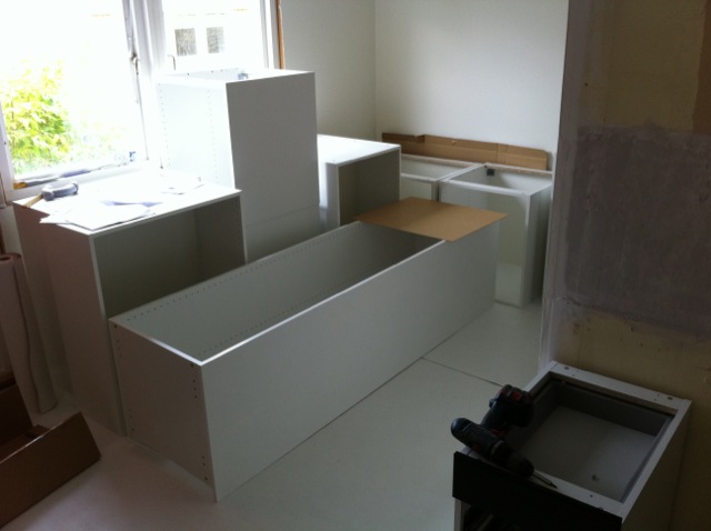 Det krävs stor ingenjörskonst när platta paket ska bli snygga och funktionella skåp i superfräscht nytt kök. Rätt skruv i rätt hål till rätt låda med rätt front åt rätt håll. Om och om igen. Tjusigt är ordet. Tjusigt.