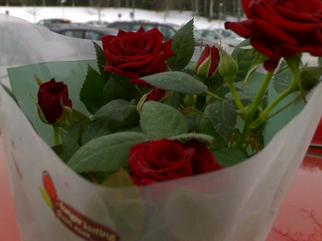Rosor är rosor om än i krukor. Och idag är väl den perfekta dagen att ge bort dem, på alla hjärtans dag. Jag kan inte se rosor utan att tänka på en liten dikt som fanns i min barndoms poesiböcker.