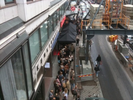 Inte många män som står i den här kön. Och kön är så lång att de som står sist knappast kommer in idag. Eller den här veckan. Men de verkar nöjda ändå.