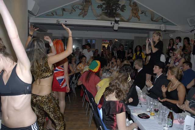 Det var tryck och öronbedövande när Julia och fem kompisar hade sin studentskiva på kändistema. Och antagligen blev det inte sämre tryck efter 10, när baren öppnade och efterinsläppet hittade ut på Djurgården.