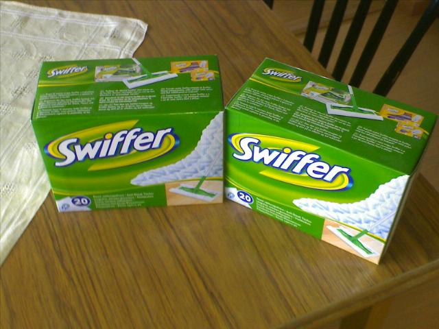 Äntigen fick jag tag på Swiffer, en produkt som min mamma ansåg att man inte kunde leva utan. Den är inte allmänt förekommande minst sagt, numera är det Vileda som tagit städmarknaden. Så självklart blev det två stycken.