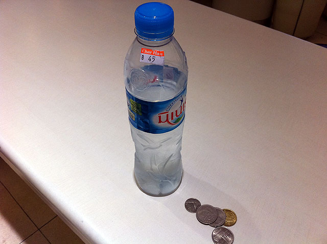 Jag har en skattkista hemma, full med pengar från hela världen. Då och då gräver jag i den och plockar fram mynt som jag kan behöva på resan. Nu senast har jag grävt fram lite Bath, till omgivningens häcklande förskräckelse. De retar mig för att de mynt som jag hittar ibland är för gamla. Men skrattar först som skrattar sist: På Bangkoks flygplats blev vi törstiga men det var bara jag som hade mynt nog att köpa mig en vattenflaska. En del av mynten var tydligen ovanliga, för expediterna samlades runt oss och oade och aade och pekade högljutt.