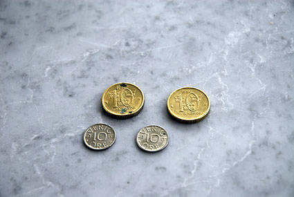 Har du bara några få mynt så kan du ju använda teskedar och deciliter istället.