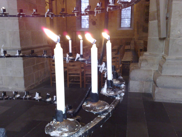 Men här, i Lunds domkyrka som jag har en speciell relation till, fladdrar mina tre ljus som inte hade fladdrat om åren inte varit så många. Det drar en vind genom kyrkan så ljusen fladdrar fort, de fladdrar kort, men den tid de brinner sprider de sitt ljus ända bort till det mörkaste hörnet.
