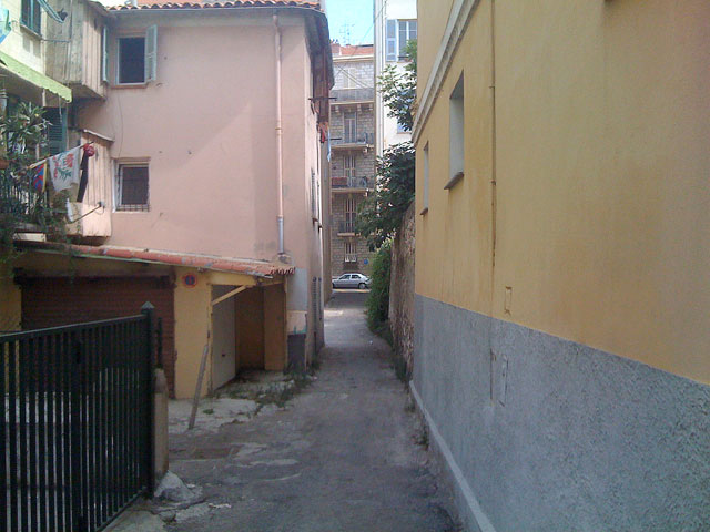 För att uppleva en stads själ gäller det att ta olika vägar varje dag, och i Nice kan man göra det. Ibland dyker helt otroligt smala gator upp, mitt i centrum, där tiden verkar stå stilla och tystnaden tar igen sig. Den här heter framtidspassagen.