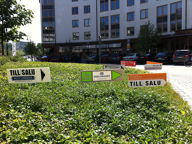 Nu när maskrosorna blommat och blommat ut, är det dags för lägenhetsvisningarna att slå ut i full blom. Rondellen i Frösunda svämmar över av pilar till trivsam tvåa, fräsch fyra, enastående etta och trevlig trea. Och till helgen fylls gatorna av ett lämmeltåg människor med tidsscheman i händerna, på jakt efter ett nytt boende. Skönt att man har lämlat färdigt sedan ett år tillbaka.